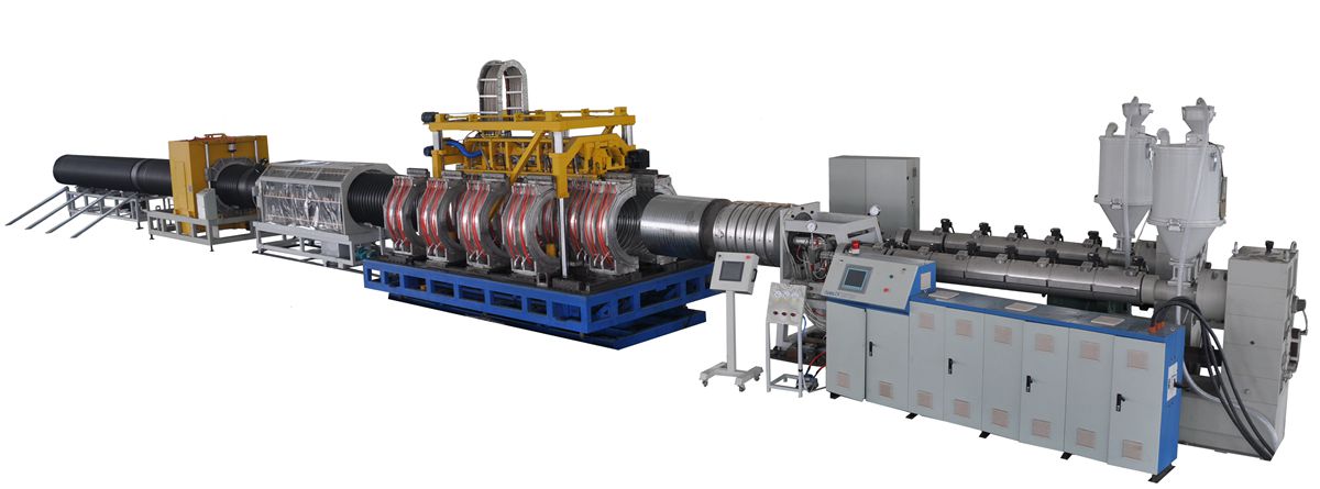 HDPE雙壁波紋管設(shè)備是以高密度聚乙烯為主要原料,分別由內(nèi)、外擠出機(jī)共同擠出,一次成型,內(nèi)壁平滑,外壁呈梯形波紋狀,內(nèi)外壁之間有夾壁空心層的塑料管材。雙壁波紋管設(shè)備產(chǎn)品具有環(huán)剛度高、強(qiáng)度大、重量輕、隔音減震,較高的抗紫外線穩(wěn)定性,使用壽命長(zhǎng),彎曲性好,耐壓,抗沖擊強(qiáng)度高等多種優(yōu)點(diǎn)??煞笤O(shè)在地質(zhì)較差的路段,而且密封性好,施工快捷。