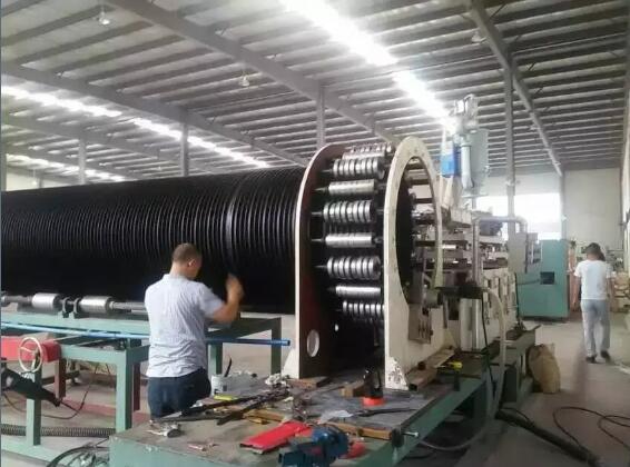 3. 熱態(tài)纏繞成型熔縫質量高,從擠塑機口模擠出的處于熔融狀態(tài)的平料帶和包覆料帶,按預定的位置均勻的纏繞在加熱的滾筒模具上,保證了結構壁管熔接縫質量,管材采用風冷卻,材料冷卻均勻。特別是結構設計中平料帶的熔接縫被料帶包覆支撐管所覆蓋,提高了制品整體的抗外壓能力。 管材的水平層與加強結構層在熔融狀態(tài)下熔接,熔縫質量高,沒有內應力,管材的整體強度高。